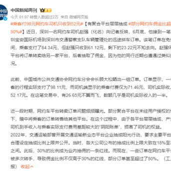 【别让网约车司机困在平台的层层抽成里】一则订单,几乎一半的付费被各路小平台拿走,这恐怕已经不能用雁过拔毛来形容了,而是直接拽掉了翅膀、大腿。这也说明,平台凭借技术上、信息上的优势,很容易对司机形成钳制,如此不对等的关系靠什么来打破?还是要让司机基本的知情权得到满足,将抽成、接单等规则进一步明晰,并透明化。